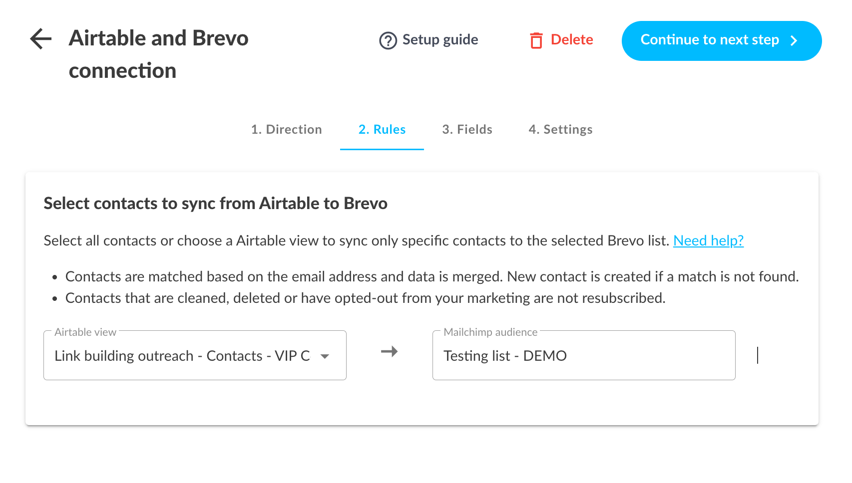 - Sync exactly what you need. Choose all contacts in a base or specific Airtable views. Map which contact and company fields stay in sync.