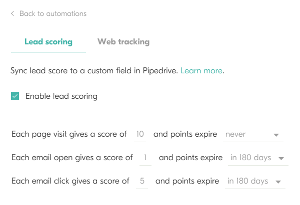 Use email and web engagement data to auto-calculate a lead score for each contact.