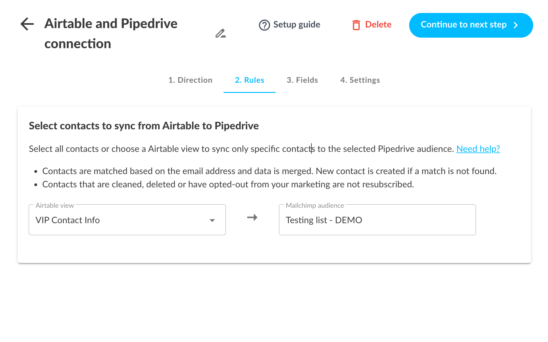 Sync how you like: Configure which contacts are synced to Pipedrive, along with data from preferred columns.