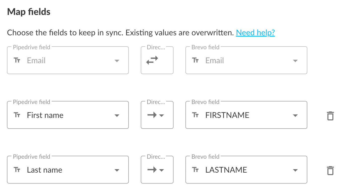 Sync key contact attributes, such as Brevo subscribe status or Pipedrive labels.