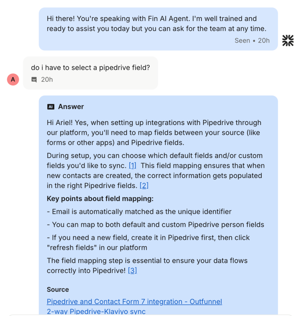 AI-powered chatbots are your answer. These smart tools manage the preliminary ‘hello, how can I assist you’ chats and ping your human team only when there’s a complex query. It’s like having an extra team member who works round-the-clock without needing a coffee break. See our example above.